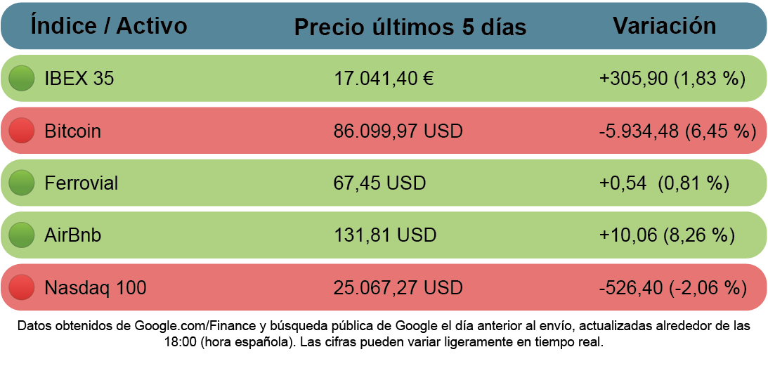 Volvemos la semana que viene. Hasta entonces, que tu vida pese menos que la deuda pública y que tu café pese más que el Bitcoin de esta semana. ☕📉