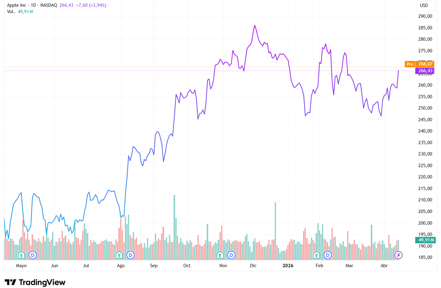 En Wall Street, a pesar del lío logístico, los analistas siguen confiando en Apple. El consenso de 77 analistas sitúa el precio objetivo de la acción en torno a los 300 dólares, cotiza ahora sobre los 268.